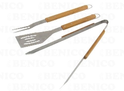 Set of 3pcs Stainless Steel BBQ Tool Set with Bamboo Handle