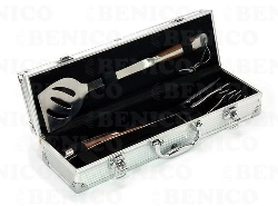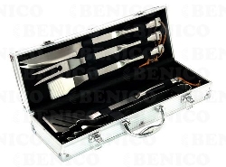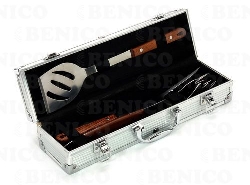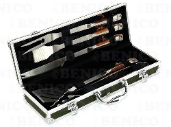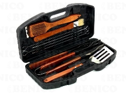 Set of 5pcs BBQ Tool Wooden Handle W/Alum. Case