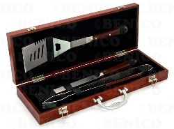 Set of 3pcs SS BBQ Tools with Rosewood Handle