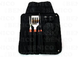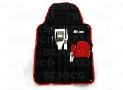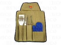 Set of 5pcs Stainless Steel BBQ Tools W/Wood Hndle & Apron